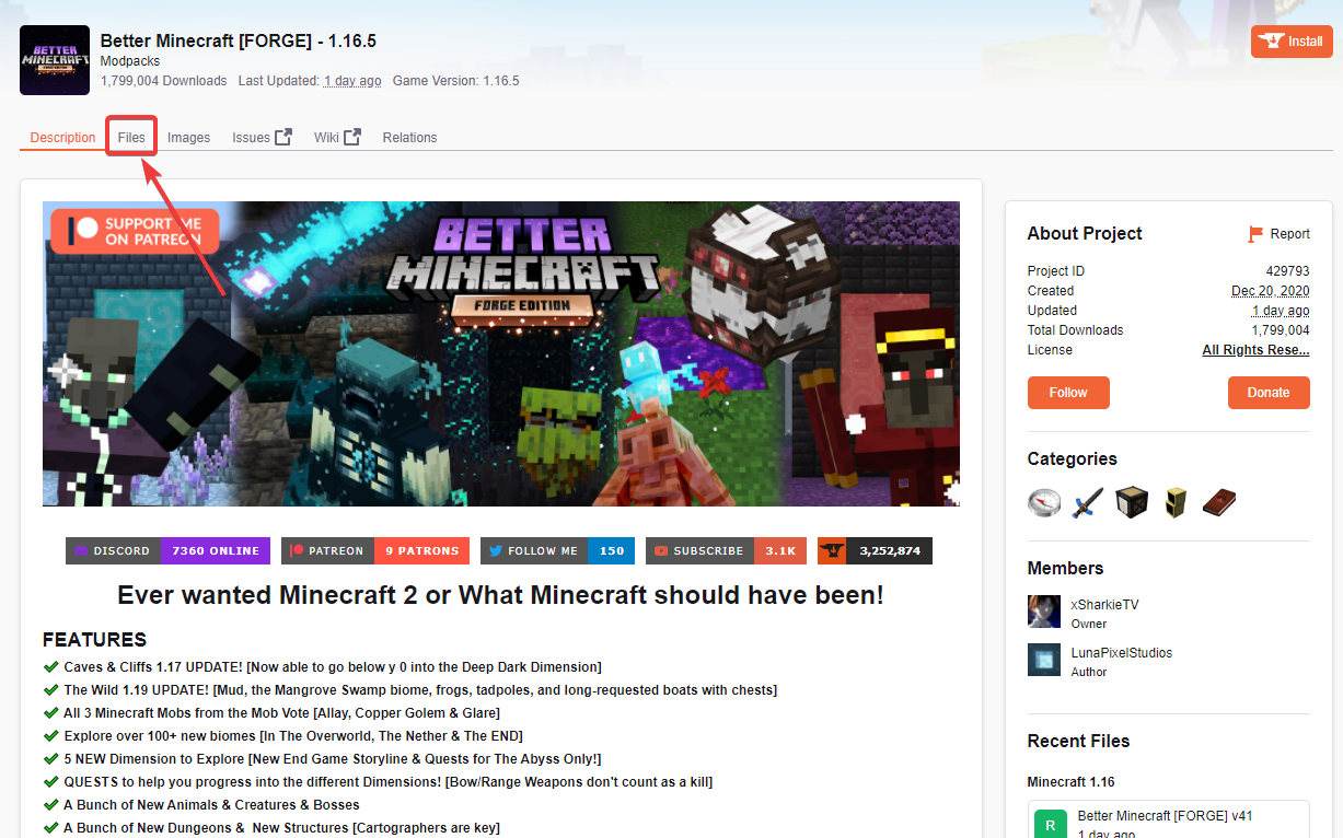 The first step would be selecting the modpack we want to install, in this tutorial we will use Better Minecraft Forge version.