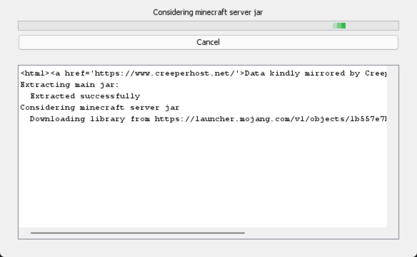 After selecting the "Install server" option and the directory where we want to install Forge, click on the "Ok" button to start the installation. This process can take a few seconds while all the files are downloaded.